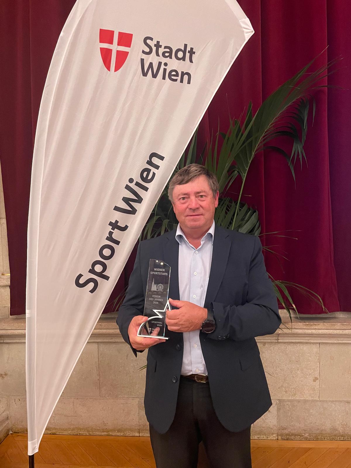 Die Ehrung nahm Mag. Martin Florian persönlich entgegen – überreicht wurde sie von Sportstadtrat Peter Hacker und Sport-Staatssekretärin Michaela Schmidt (Bundesministerium für Wohnen, Kunst, Kultur, Medien und Sport).